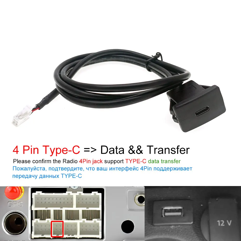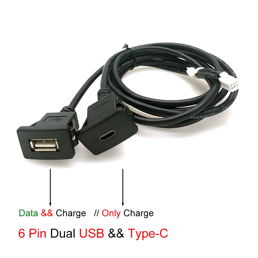 Car Stereo Radio Dash Board Mount Panel Extension 4 6 Pin USB Type-C Jack Port Cable Adapter for Android Multimedia Navigation