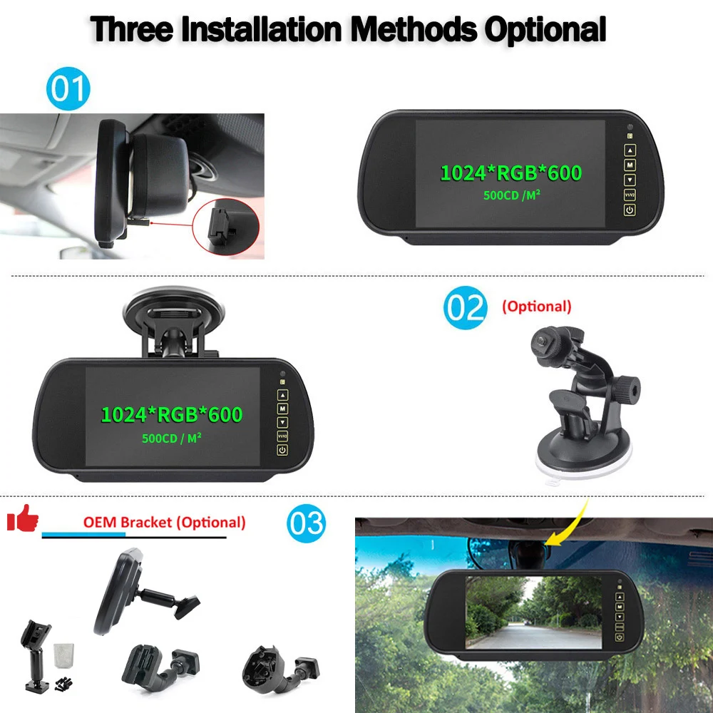 7.0" Color TFT HD Monitor with 2 video input, 1024*RGB*600 high resolution, Screen brightness: 500CD/M² works perfectly with Twin Lens reversing camera.
