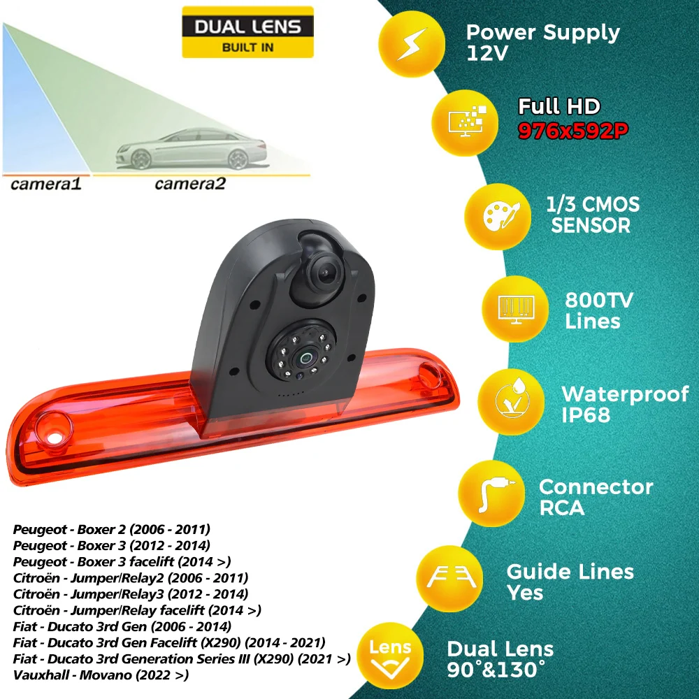 Dual Lens Reversing Camera 3rd Brake Light Camera monitor kit Reverse Camera For Fiat Ducato/Citroen Jumper/Peugeot Boxer/Movano