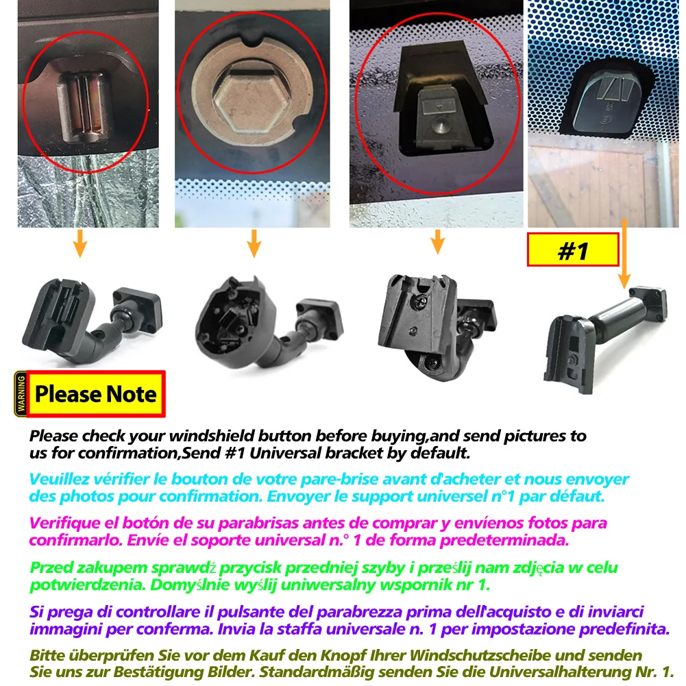 →Note: Default(Comes with only #1 bracket, pls tell us which bracket number you need after you place an order, if you do not know which bracket is suitable to your car, you can take a picture to show your car mirror bracket)If your windshield doesn't have any buttons then you can order this bracket kit.