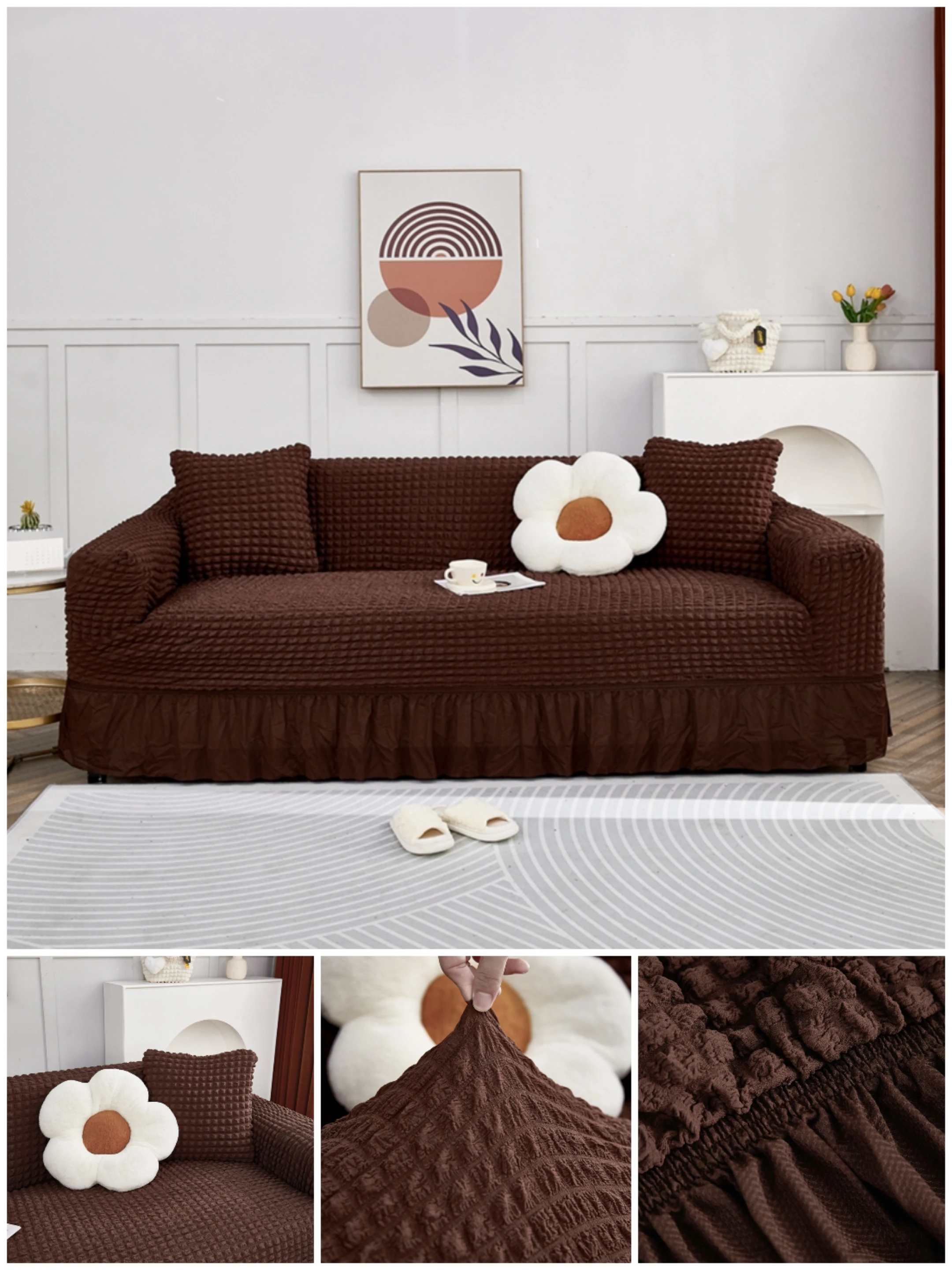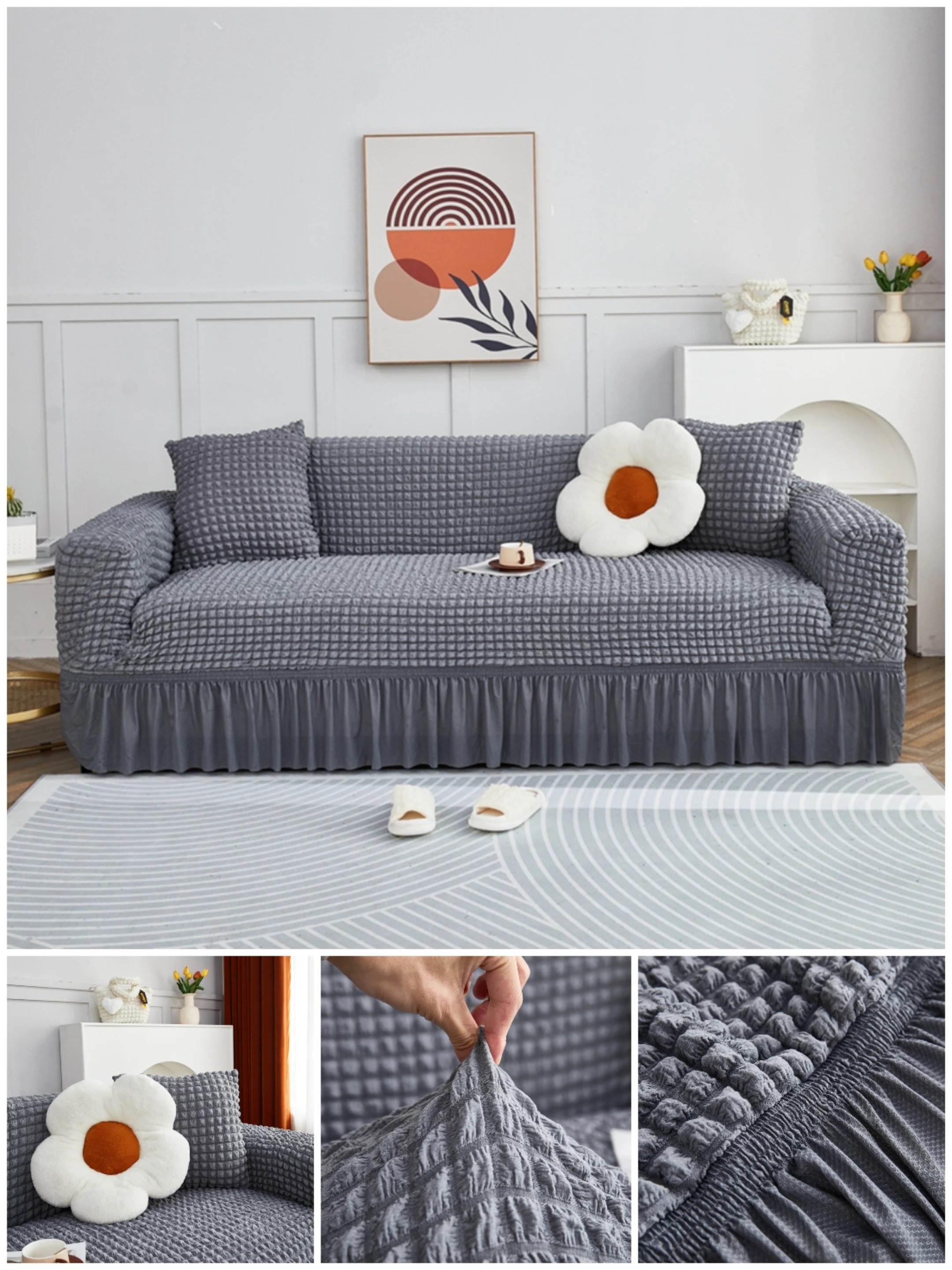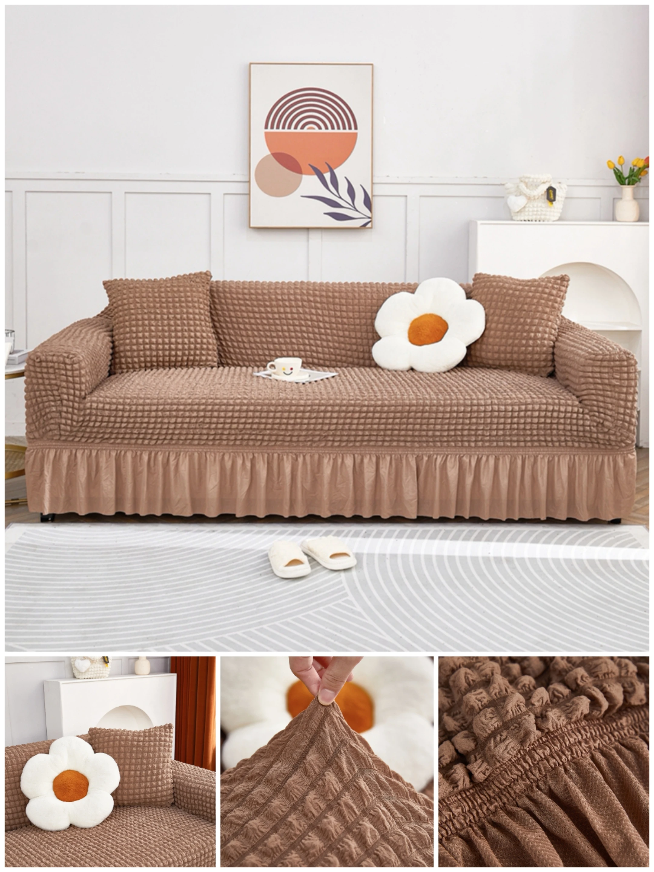 Elegant Elastic Sofa Cover Light Luxury Stretchable Fabric Full Coverage with Seersucker Skirt Perfect for Living Room Decor