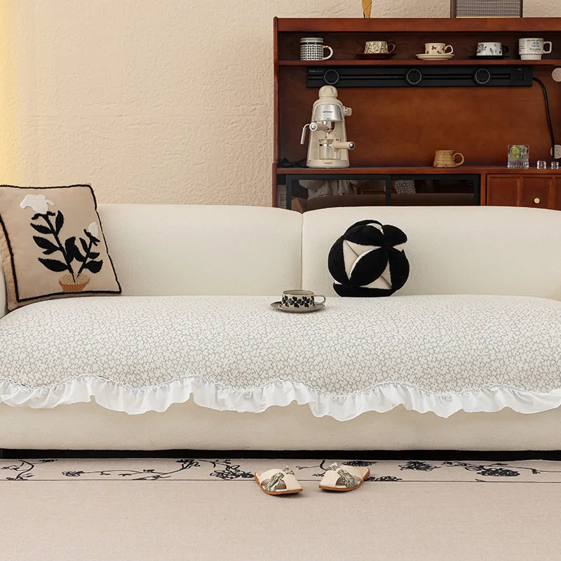 French Antique High-end Skirt Sofa Cushion 2025 New Style Light Luxury High-end Straight Row Cover Four Seasons