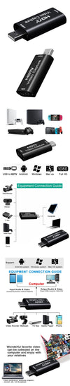 HD 4K Video Capture Card USB3.0 2.0 HDTV Video Grabber Record Box for PS4 Game DVD Camcorder Camera Recording Live Streaming